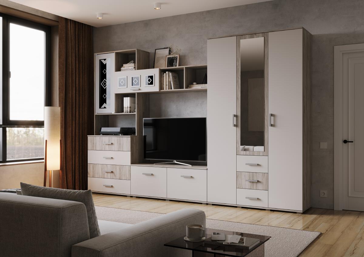 Современный дизайн, элегантность форм и изысканность, не оставит равнодушными ценителей красоты и уюта. Выполненная в светлом цвете, гостиная «Белла», сделает вашу квартиру более просторной и изящной.