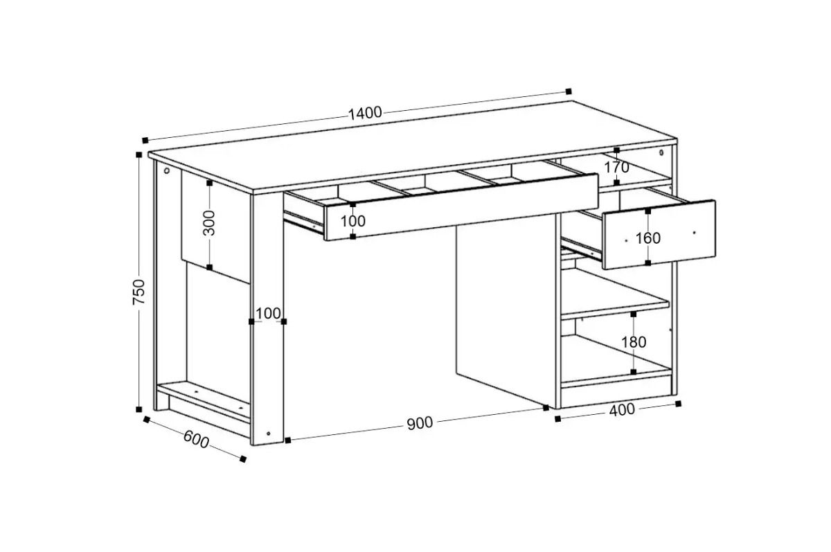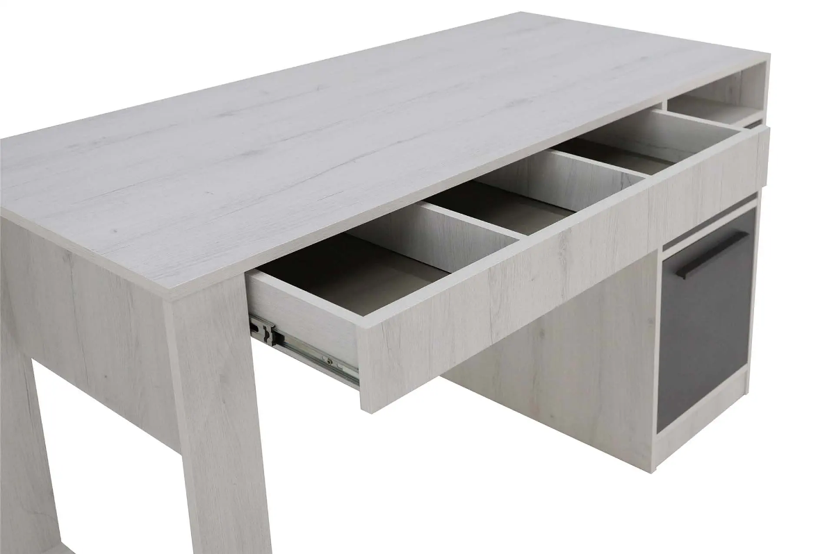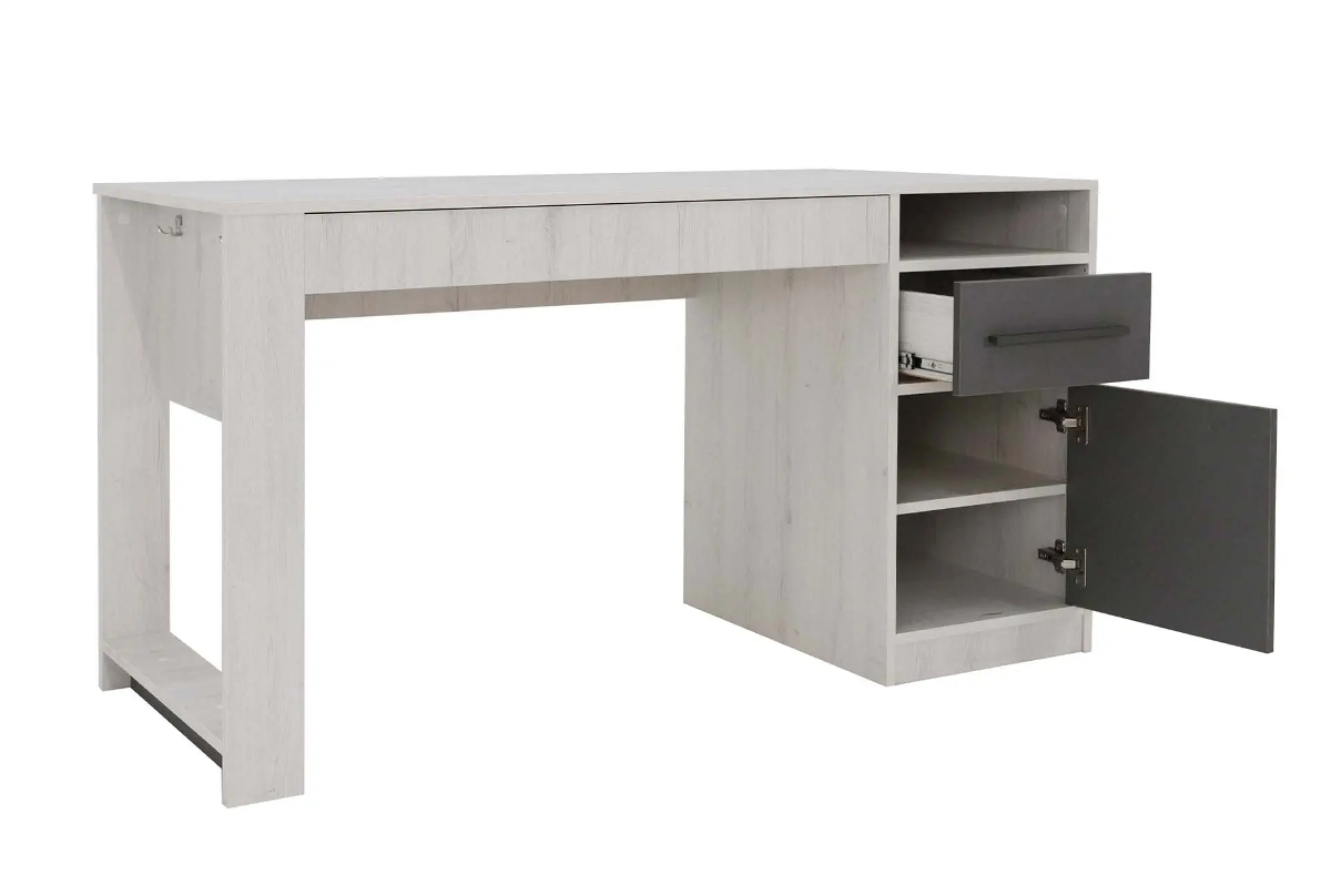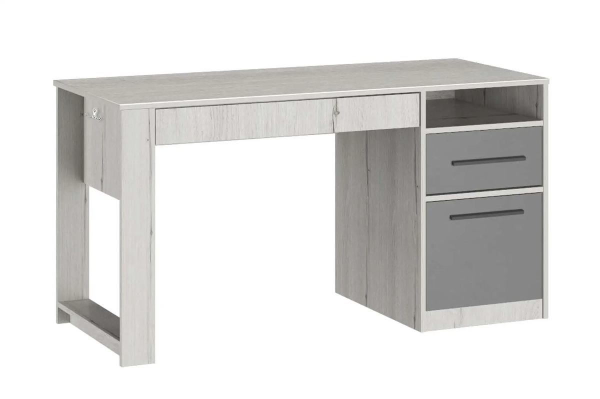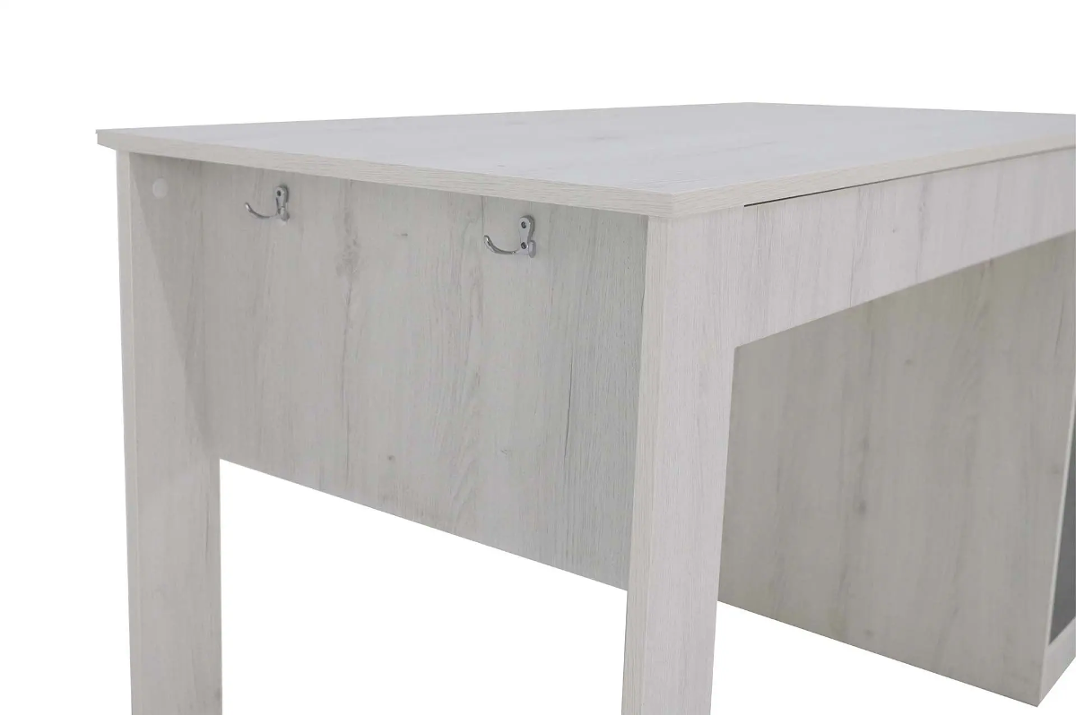 Стол с тумбой и выдвижными ящиками – идеальное решение для подростковой комнаты. Крючки позволят повесить рюкзак или пакет, ящики и полки уместят в себя все учебники, книжки или предметы для творчества.